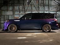 R-Spec bazuje na seryjnym QX80 w specyfikacji Autograph, czyli w najlepiej wyposażonej i najdroższej wersji. Inspiracją dla R-Spec było coupe GT-R T-Spec Takumi Edition, zaczynając od fioletowego oklejenia, które zmienia kolory w zależności od padającego światła. Dla konceptu zaprojektowano poszerzający nadwozie body kit oraz nowe elementy aerodynamiczne, jak przedni splitter, skrzydło wydłużające linię dachu oraz dyfuzor. Potem robi się jeszcze ciekawiej: nowe końcówki wydechu, nowe zawieszenie z regulowanymi amortyzatorami Motion Control Suspension i sprężynami Eibach, zmodyfikowany układ kierowniczy, 24-calowe felgi z ogumieniem Yokohama o szerokości aż 315 milimetrów oraz węglowo-ceramiczne tarcze hamulcowe zaadoptowane prosto z GT-R'a generacji R35.